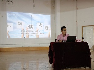 的求学经历和获得成就,并对学长表示了热烈欢迎。张老师从大一的懵懂、大二的彷徨、大三的迷茫、大四的蜕变四个方面展开叙述,他总结了自己四年的学习经历,并送给大家两个词:踏实、笃定。张老师引用了习近平总书记的话,强调了一所学校拥有好老师的重要性,并对大学期间对其提供帮助的所有老师表示了感谢。接着,他为大家讲述了他在焦躁中如何获得进取心、如何在实践中与人合作,如何直面失败与成功、如何在学生会工作与学业之间保持平衡、如何去追求自己的梦想等。张老师强调,同学们一定要抓好课堂上的时间紧跟老师的思维,保证课堂学习的效率,同时多去参加学校活动,锻炼自己,人只有在实践中才会成长。最后,刘书记对此次入学教育讲座做了总结,他对张老师在校的优秀表现、取得的成就表示了肯定,并希望同学们能以此为榜样,努力学习、积极奋斗。