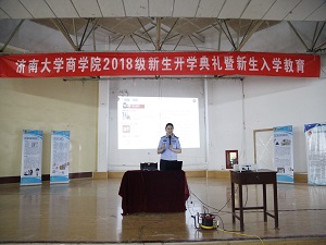 于舜耕校区七食二楼礼堂举行“我在你身边—扫黑除恶、反电信普法进校园”新生入学教育主题讲座。市中公安分局刑警大队反诈中队陈天慈,市中公安分局刑警大队综合科民警李娟,济南京师侓师事务所韩毅,2018级辅导员及全体新生参与了此次活动。