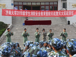 为提高新生的消防安全意识,让新生更多地了解消防安全知识,从一定程度上减少校园消防安全隐患。9月13日,学校在经管楼广场举办消防演练活动,保卫部、武装部、安全管理处李玉奎科长担任此次活动的主持人,2018级辅导员王显尊、欧阳阳及全体2018级新生参与其中。