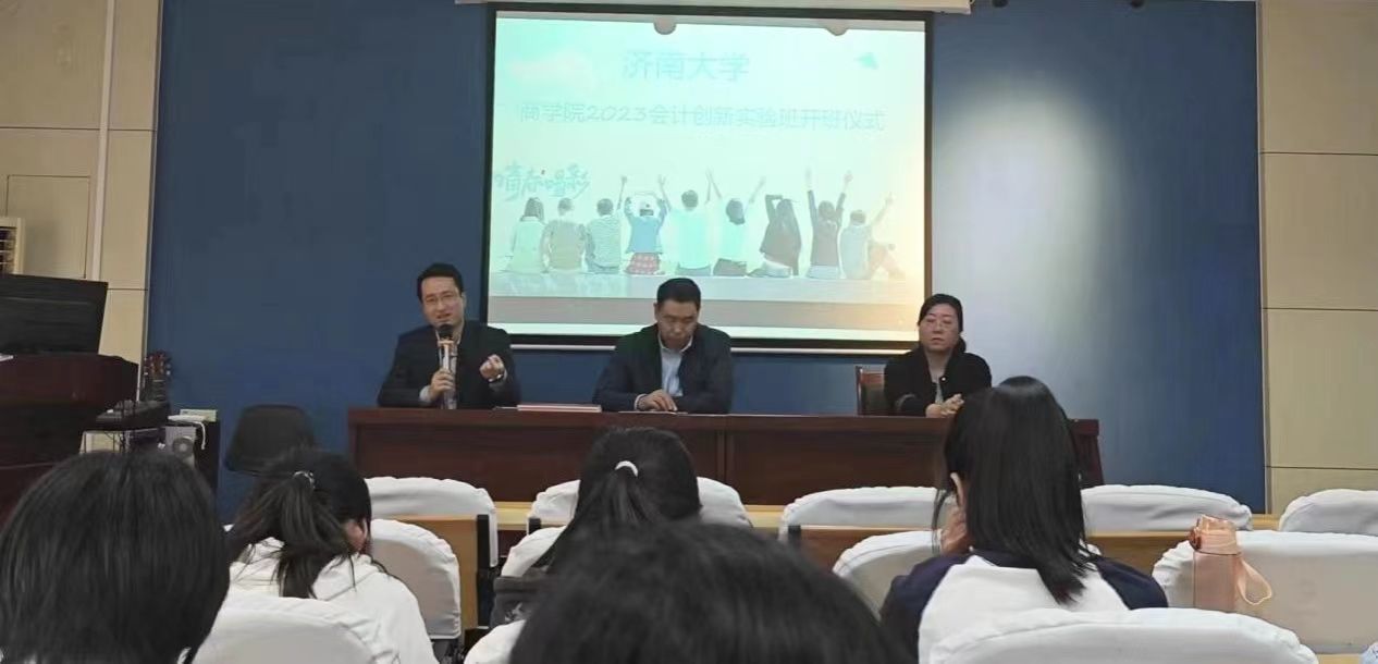 副院长刘毅教授,CIMA公会华东区和西北区首席代表冯勇先生,济南鲁能希尔顿酒店财务总监、CIMA会员刘湘华女士出席开班仪式并讲话。