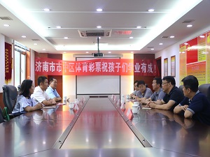 副院长邢仁忠向济南市市中区体育局代表赠送锦旗。最后,三方就西坡留守儿童关怀问题展开讨论,商议深度合作问题。