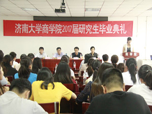 研究生毕业生代表、山东省优秀毕业生、工商管理专业白林同学代表全体毕业生发言。他向母校、学院、老师表达了感激之情。她深情地回顾了自己在济大的求学生涯,并表示将会铭记“弘毅博学 求真至善”的精神,在未来的路上,也会三省吾生,充实自己,沉淀自我,以更加积极的态度面对今后的生活,以饱满的热情、务实的态度,积极进取,虚心请教,用实际行动报答母校的培养,为国家和社会做出更大的贡献。