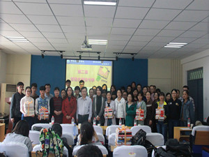 工商管理系系主任马黎老师作为主持人在进行精彩的开场白后,宣布授书仪式正式开始。仪式伊始,各班级代表上台领书。接着,李晓冬教授通过孔子的三重境界来鼓励同学们快乐读名著,提高读书效率,希望大家时刻保持“怀疑”的态度,并向大家推荐《科学管理原理》一书。之后,学生代表王赛与徐慧玲上台发言,就阅读方式、阅读意义以及网络时代下的读书现状表达了自己的观点。最后,王爱国院长对活动的举办给予了极大的支持与赞扬,并指出年轻时诵读经典,年老时就会转化为财富,希望大家以本次活动为契机,从名著中获益。王院长强调,细节决定成败,针对学生用词不清的情况表示关心并寄予希望,并以与中山大学博士生的谈话为例,鼓励大家要立志,要考研,要出国,要做有学识的商院学生。随后,祝晓斐老师表达了对同学们的殷切期望,希望同学们获得知识,成长自己。