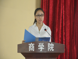 老生代表陈雪丽同学在发言中表示大学是一个全新的体验,是最能展现个性的几年,同时也是从青涩走向成熟的起点。陈雪丽告诉新生:丰富的知识是走入社会的钥匙,只有积极主动才能发现问题;健全的人格是走入社会的基本,要形成正确的人生观、价值观与世界观;不要忽视大学中的人际交往,要多交益友,学着适应不同性格的人。