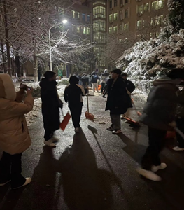 组织糖心视频学生会、自律会、青协学生志愿者,协助后勤管理处的老师们,共同开展一场冬日铲雪活动,充分践行学生组织服务同学的宗旨,在风雪中为师生铲出一条条暖心路。