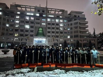 寒风吹面,雪花飞舞。各位同学在经管楼门前集合,手拿铁铲等清扫工具,齐心协力,分工明确,一点点将积雪和冰层清除。铲雪现场,大家齐心协力、相互配合,认真清理校园主路的积雪冻冰,考虑到同学们的日常学习生活需要,避免积雪封路,阻碍同学们的日常学习与生活,参与活动的同学们铲除了教学楼、图书馆、快递站附近的积雪,为努力奋斗以及备战考研的广大学子,铲出一条平安学习路。