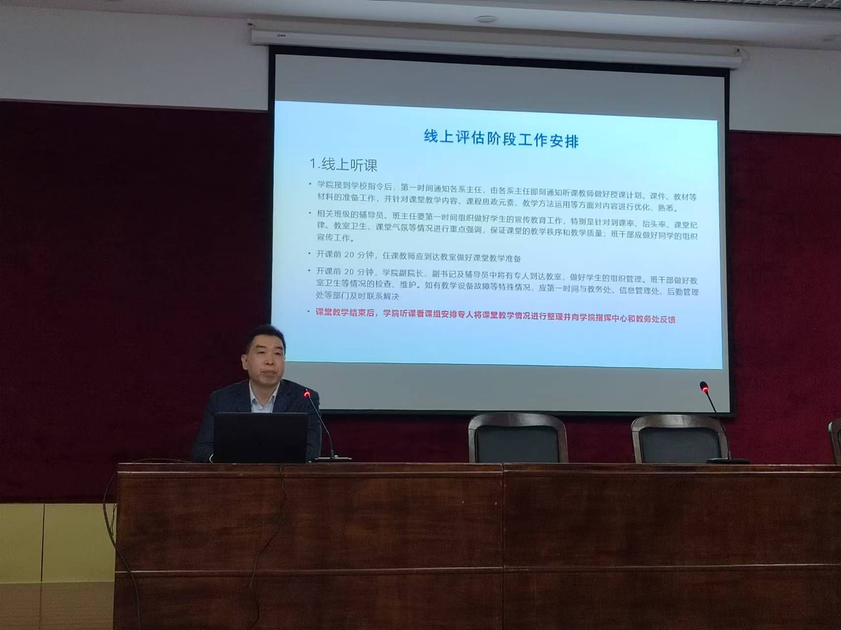 本科教育教学审核评估启动会会议精神,对审核评估工作主要任务、线上评估工作安排、专家组工作要求进行细致解读。他指出,全院师生要认真对照评估指标和审核重点,细化思路举措,狠抓工作落实,对照指标体系,全力以赴配合学校接受专家审核。