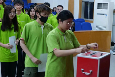 报告结束后,111名团员代表依次上前投票,采用等额选举的方式选举陈淑云、李天一为共青团海角社区