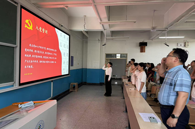 随后,全体党员在李仪千的领誓下面向党旗重温入党誓词。