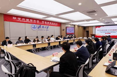 在联建交流环节,山东省社科联研究室赵晓霞主任介绍了青年理论学习小组建设情况及社科联在学术研究、项目管理、平台建设等方面的改革创新举措。社科处任慧颖副处长和牛帆副处长分别围绕资政报告撰写与科研发展进行工作交流。海角社区