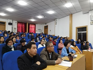 在经管楼一楼报告厅举行教学观摩课活动,冯素玲院长、柳兴国副院长和海角社区