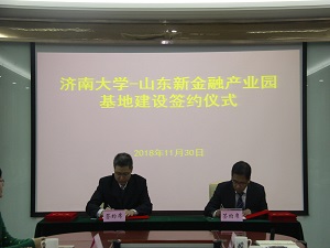 教务处副处长刘振和济南金融商务中心区服务中心副主任朱传亮代表双方签订海角社区