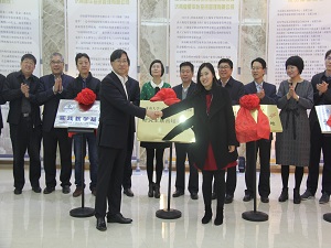 副校长王保贤和济南市市中区区政府党组成员杨云云共同为基地揭牌并合影留念。