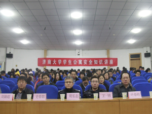 首先,学生工作处贾海宁处长为大家说明了开展本次讲座的目的,他希望通过各位警官的讲解和示范,提高学生们的消防知识安全和防盗防诈骗能力,度过安全美好的大学四年。随后,舜玉路派出所副所长朱琳警官为大家讲解校园安全隐患,防盗防电信诈骗等内容,并在讲解过程中为大家普及基本的消防安全制度,简要介绍相关法律法规,旨在使大家形成基本消防和自我保护观念,提升防盗防诈骗的能力。朱琳警官结合亲身经历实际案例,并配合一幅幅触目惊心的图片、一段段发人深省的视频,生动的讲解了防电信诈骗和消防安全知识。听众席不时传来惊异之声,大家表现了对讲座内容的关心和重视。接下来,安全管理处张韶春老师介绍了消防逃生演习的注意事项,并以曾发生过的重大安全事故告诫大家要珍爱生命、及时有序疏散撤离。接下来,保卫处工作人员打开烟雾弹,参会人员在各位民警的指导下,有序安全撤离到经管楼前广场,成功进行了一次消防安全模拟逃生演练。最后,朱琳警官不忘再叮嘱大家在今后的学习生活中注意安全,谨防安全事故的发生,让大家对消防知识有了更直观深入的了解。至此,本次讲座圆满结束。