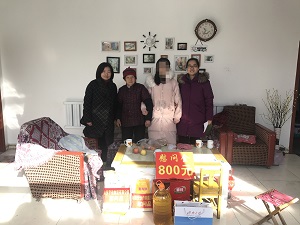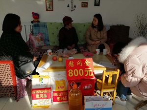 学生工作办公处祝晓斐老师和辅导员庞德英、侯环老师携山东宇佳物流有限公司及山东世纪开元电子商务集团有限公司提供的礼品和慰问金来到位于山东省济南市长清区崮云湖街道开山的苑同学家中进行探望。