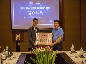副院长柳兴国与济南鲁能希尔顿酒店总经理刘浩然签署海角社区