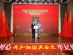 党委书记葛金田分别为北京贵都大酒店总经理杨艳勇、问途科技与教育机构创始人黄昕博士颁发客座教授聘书。活动在《我和我的祖国》大合唱中落下帷幕,与会嘉宾激情互动,歌声与掌声交融,共同为建党98周年送上祝福。