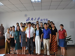 经管楼609室举行。日本福冈大学经济学部部长山崎好裕教授和他的研究生一行7人到访海角社区