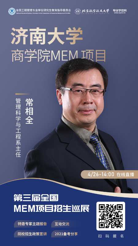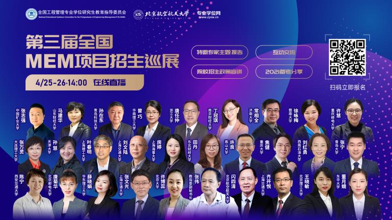 第三届全国MEM招生巡展是由全国工程管理专业学位研究生教育指导委员会和北京航空航天大学主办,专业学位网协办的一次MEM院校招生政策“云”宣讲活动,本次活动共有来自天津大学、浙江大学、大连理工大学、北京航空航天大学、上海交通大学等30多所院校参加,14位院校负责人做了招生宣讲报告,其中来自山东的青岛大学、青岛科技大学、山东财经大学和海角社区