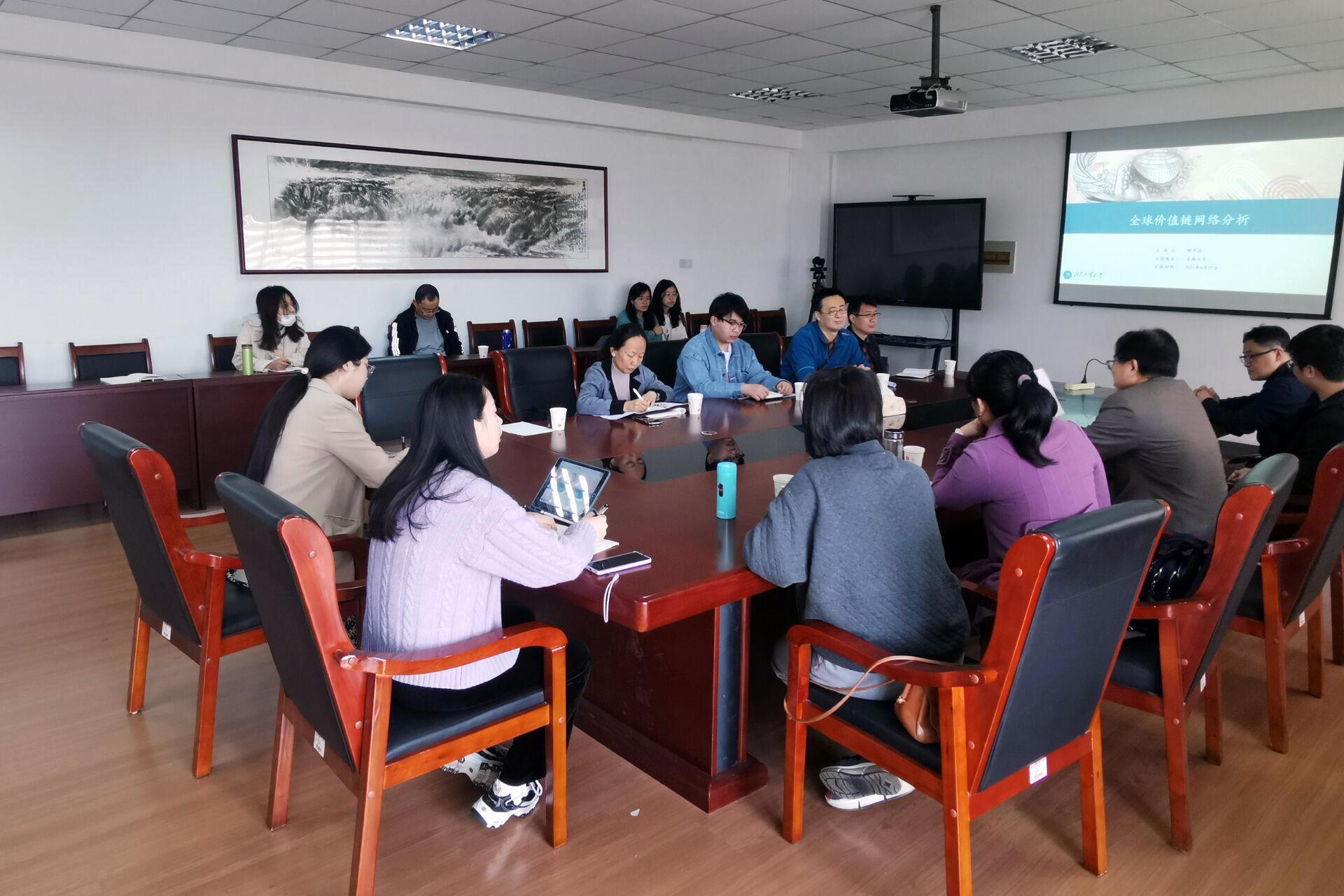 本次论坛报告数据详实、案例丰富、图片精良、深入浅出,引发了大家对于全球价值链网络理念、如何运用网络分析、算法工具解决当前世界经济学和国际贸易政策具体研究问题的共鸣。邢李志老师结合其多年来的研究与访学经验,深入讲解了中国在全球价值链的地位及未来的努力方向。会后,参会师生与邢老师进行了深入的探讨,今后将继续围绕共同关心的研究领域加强交流合作。