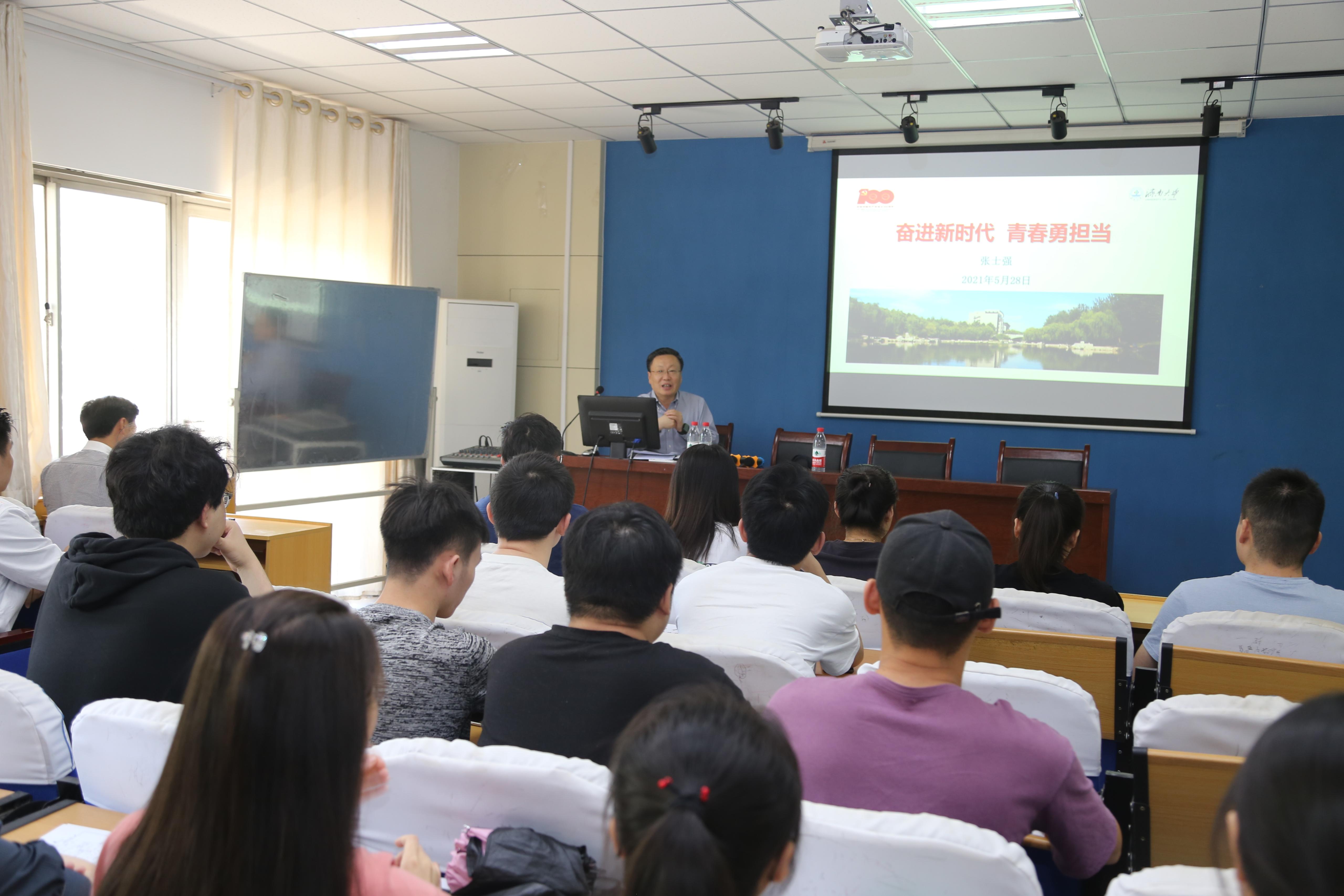 5月28日下午,张士强校长在舜耕校区经管楼217以“奋进新时代 青春勇担当”为主题,为海角社区
