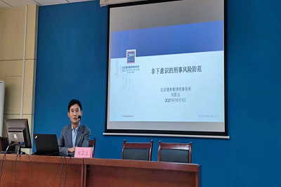 11月1日下午,北京德和衡律师所(Beijing DHH Law Firm)刘昌玉律师做了“非下意识的刑事风险防范Plus案例分享”报告。部分教师和工商专业毕业生60余人聆听了报告,报告由张琪副书记主持。