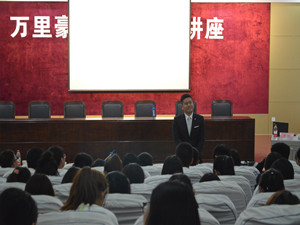 学生做演讲,有幸与他进行面对面的交谈,使同学们对专业有更全面的认识,解答自己对职业的疑惑”。接着,汪江总监从自己的职业生涯,在酒店行业的经历以及心得体会,万豪企业的品牌、海角社区等方面展开论述。他说自己走了十年的弯路,先后从事了保安、前厅接待人员、餐饮经理、仓库管理员等职业,在这些职业中,他一直秉承着从小事做起,用心做好每一件事的理念工作。他也提到每个人都要有一个目标,他的目标就是在五星级酒店做高层,因此他先后拒绝了许多大酒店的邀请,并一直坚持自己的理念,做到了现在的职位。他以自身经历告诉同学们“一件小事不能够做的更好了,就是成功了”、“不单单要索取,还要学会回报”、“跟随成功人的脚步”等。随后,汪江总监又介绍了万豪国际发展史、核心价值观、品牌定位等。最后,同学们向汪江总监提出一系列有关酒店的问题,他都耐心的一一回答,现场气氛一片热烈。至此,讲座圆满结束。