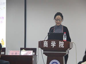随后,赵薇教授作题为“执古之道,御今之有——经典中的生态文明观”的主题报告。赵薇教授从现存在的环境问题出发,讲述了生态失去平衡后地球所遭受的危害,又从森林的大量减少、土地沙化、生物多样性减少等问题联想到人类如今需要做些什么。赵薇教授赞同老子的“道生一、一生二、二生三、三生万物”的道理,人类应树立平等的生态观,怀感恩之心对待自然,并且她强调“知常曰明”与生态平衡有密切关系,只有“知常”才能了解生态,从而维持生态平衡。