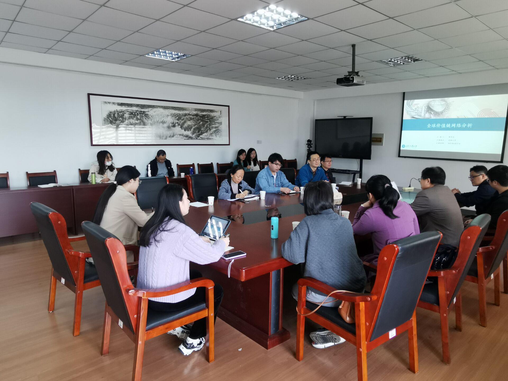 本次论坛报告数据详实、案例丰富、图片精良、深入浅出,引发了大家对于全球价值链网络理念、如何运用网络分析、算法工具解决当前世界经济学和国际贸易政策具体研究问题的共鸣。邢李志老师结合其多年来的研究与访学经验,深入讲解了中国在全球价值链的地位及未来的努力方向。会后,参会师生与邢老师进行了深入的探讨,今后将继续围绕共同关心的研究领域加强交流合作。