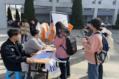 东校区经管楼前广场上举办了“‘拒绝’不是我的错”心理健康主题活动。