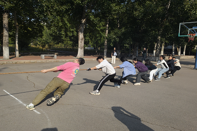 研究生“迎新杯”拔河比赛在篮球场如期拉开帷幕。