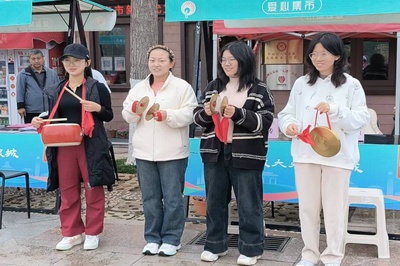 的同学们和泉城义工的志愿者们早早地来到了泉城广场泉城义工服务站,精心布置好宣传展板和宣传资料后,开启特色反诈宣传。在活动现场,志愿者们学习了独具特色的防诈骗顺口溜,并佐以民乐打击乐器,在欢快的旋律中,将反诈知识唱涌而出。市民们更加充分的了解了防诈骗知识,进一步强化了市民的防骗意识,筑牢反诈防线。
