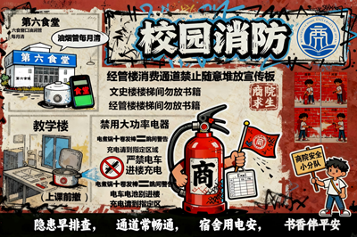 青年志愿者协会承办。本次活动通过创意设计形式,使学生由消防知识接收者转变为主动传播者,让学生们在沉浸式创作中深化了对消防安全的认知与理解。活动通过线上线下多渠道宣传,得到了广大青年学子的积极响应。同学们踊跃报名参与,围绕宿舍用电、食堂油烟、教学楼逃生通道及实验室安全操作等校园消防场景进行海报创作,用生动灵活的方式诠释对消防安全的理解,用一图一文传递防护理念。为确保所宣传的消防内容准确,宣传内容更好地传播,同学们深入查阅消防资料,将专业知识与艺术表达进行有效结合,展现出我院青年学子对维护校园消防安全的责任感与担当。