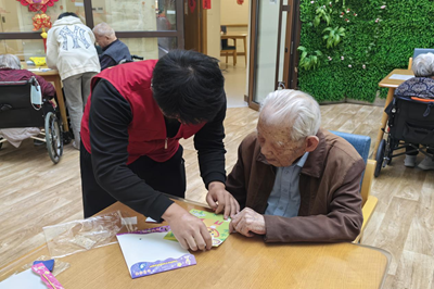 青年志愿者们前往福瑞达护理院,开展“粘球绘暖冬,志愿暖桑榆”主题志愿服务活动。