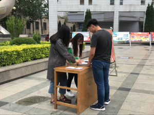 活动前,青协负责人召开志愿者会议确定活动开展的时间、地点、内容及形式,并培训参与活动的志愿者各方面能力,将他们分成四个小组分别负责各项事宜。活动伊始,志愿者达到活动地点拿着事先准备好的宣传资料向路过的同学们介绍活动并邀请他们一同参与此次活动。接着,由志愿者向他们进行详细的介绍,让他们更多、更好的了解志愿西部的内容和意义。同学们表现出极大的兴趣,仔细聆听。最后,一位参与活动的学生说到:“这个活动很有意义,我从来没有参加过这类活动,我希望可以通过参与这次活动为社会和国家做出一些力所能及的事情。”此次活动在同学们的积极参与中结束。