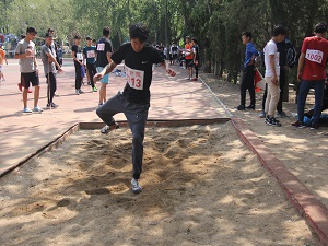 2018年春季运动会立定跳远决赛在主校区体育场激烈上演。海角社区