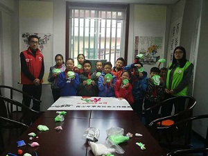 活动前期,志愿者联系基地负责人,确定活动的时间,地点以及开展形式,并接受培训。活动展开阶段,志愿者们首先到达“花young家园”服务基地进行相关布置。在孩子们写完作业后,志愿者们和孩子们开始用事先准备好的太空泥一起制作世界水日标志。在制作过程中,志愿者们对孩子们进行耐心指导,并详细介绍了世界水日标志的来源和意义,呼吁孩子们节约用水,勇于制止浪费水资源的行为。其中一位小朋友说到:“我知道了水对我们的重要性,以后我一定会节约用水,为发展做贡献的。”最后,孩子们纷纷展示自己的制作成果,活动在志愿者与小朋友们的合影留念中圆满结束。