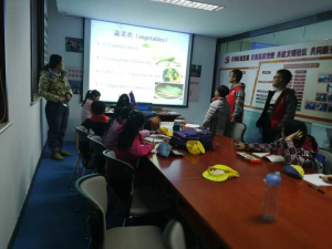 活动开始前,负责人为此次活动做积极准备。活动伊始,参与人员到达基地安排好相关事宜,并用英语做简单的自我介绍,随后让学生们用英语介绍自己的兴趣爱好,接下来的二十分钟里青协志愿者们通过配图帮助学生们学习关于食物的单词,在此基础上让学生们选择一个最喜欢的食物代表自己进行萝卜蹲游戏,通过这个游戏来巩固学过的单词。课程结束前,青协志愿者们与小学生们还一起欣赏英文歌曲,并让有兴趣的同学跟着音乐学唱。活动接近尾声,青协志愿者们与同学们合影留念后与他们道别。最后,活动在一片欢声笑语中圆满结束。