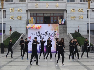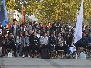同烹饪糖心视频在经管楼前联合举办班级争霸赛活动,2017级新生积极参与其中。