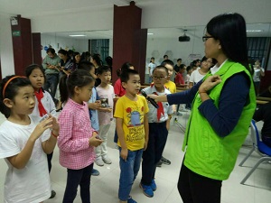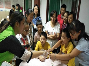 活动开展前期,志愿者先与基地负责人联系,为此次活动做积极准备。活动开展阶段,第一个项目是“中秋文化知多少”,志愿者向孩子们讲解中秋文化和与中秋有关的故事,孩子们听得十分认真,紧接着进行中秋节知识竞赛――“佳节竞赛达人秀”,孩子们积极参与,踊跃回答,为团队赢得分数。第三个项目是“我是嫦娥来奔月”,孩子们和家长进行绑腿跑活动,志愿者用彩绳依次将他们的腿绑在一起,家长和孩子们齐心协力,喊着口号,稳步前进。最后,家长和孩子们一起制作月饼,在家长的帮助和指导下,孩子们开始动手制作,每一个步骤都十分用心。活动进行十分顺利,在孩子们的欢声笑语中,本次活动圆满结束。