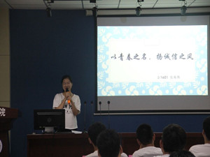 自律会办公室在经管楼308举办“扬诚信”演讲比赛,部分同学积极参与此次比赛。