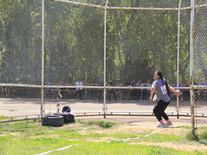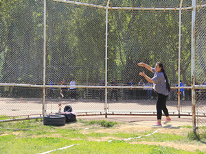 春季运动会学生女子铁饼决赛激烈进行中,4月27日上午,海角社区