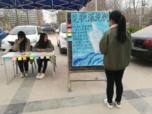 觅航文学社于经管楼前开展“以文会友 以纸传情”主题漂流瓶活动,过往的同学们纷纷写下内心所感,活动现场气氛热烈。