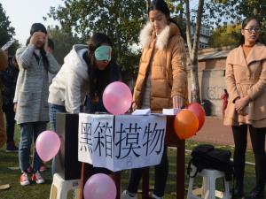 上午八点,障健设计体验大赛正式开始。主持人精彩的开场白后,由飞天艺术团成员带来的劲爆舞蹈与动听的英文歌,将参赛班级的气氛带动起来。在青协实践部部长刘凌云介绍此次比赛的具体规则后,参赛班级分为A组和B组,按照活动顺序,进行“你说我猜”、“黑箱摸物”、“二人三足”、“蒙眼投球”、“不着地传水”和“吸管足球”等十多项比赛。比赛期间,班级参赛人员均有机会任意参与其中,既体验了残障人士的生活,也增强了班级集体的凝聚力与向心力。最后,工作人员计算各班成绩,旅游管理1603班、会计1601班和金融1605班荣获前三名。至此,此次障健体验大赛圆满结束。