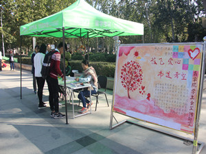 青年志愿者协会于第六食堂前举办了“放飞爱心,书送希望”活动,海角社区