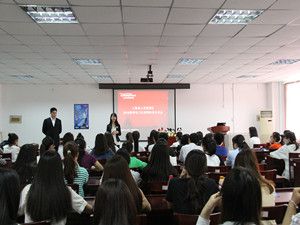 下午一点,宣讲会正式开始,宣讲人首先用有奖问答的形式带动起了会议氛围。随后,介绍了此次宣讲会的主要内容,会议总共分为四个部分:上海迪士尼度假区概况、度假区2016春季实习生招聘介绍、度假区薪酬福利及培训发展与问答环节。其中,同学们对招聘职位大类介绍和薪酬福利这两方面更为感兴趣。最后,许多同学在问答环节提出有关疑问,宣讲人分别进行了耐心地解答,至此宣讲会圆满结束。