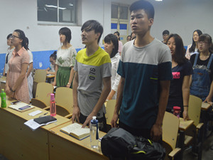 晚上八点,面试正式开始。首先新野分会副会长高尚磊带领社团成员进行“三喊一唱”活动,成员们慷慨激昂的宣誓,表达出对志愿工作的极大热情。随后,分会会长张元元发表讲话,严厉又不失亲切的话语让志愿者们心生敬佩。接下来进入到面试环节,此次下乡活动征集了滨州、江西和临沂三个地点,志愿者们根据个人意愿选择心仪的地点并陈述理由。其中有同学讲述了自己曾经的支教经历,真挚的情感深深打动了评委和观众。最终,评委们经过讨论决定出下乡队伍的人员安排,分别由高尚磊、张元元和李德祥带领滨州、江西和临沂下乡队伍,进行为期半个月的暑假“三下乡”活动。至此,面试活动圆满结束。
