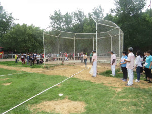 春季运动会教工男子中年组铁饼决赛激烈进行,汤卫东老师在本次比赛中获得第三名的优异成绩。
