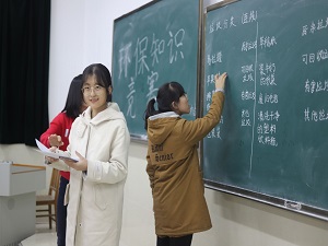 活动伊始,两位主持人介绍了本次竞赛的规则,以游戏互动的形式向参赛者详细地讲解了新式垃圾分类标准和常见生活例子,为稍后的竞赛开展提供了支持。竞赛共分为两个环节,第一环节为集体答题,由主持人选择三位同学回答黑板上的题目,这些题目融入了生活中常见的垃圾类型及分类标准,以一种新的形式丰富了大家的基本知识;第二部分为卷面答题,考卷分为A、 B 卷,参赛者需要在规定时间内答题,这一部分涉及的知识较为主观,使大家通过书面的方式讨论了如何促进垃圾分类、保护环境等问题。参赛学生积极作答,书写工整,最后,实践部两位同学在监督下进行判卷,登记成绩,整个竞赛进行顺利,在一片掌声中圆满结束。