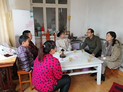 来到小刘同学家后,老师表扬了小刘同学在学校取得的成绩,让小刘同学的父母放心,告诉他们小刘在学校一切都好,随后送上了慰问金和慰问品并表达新年祝福。